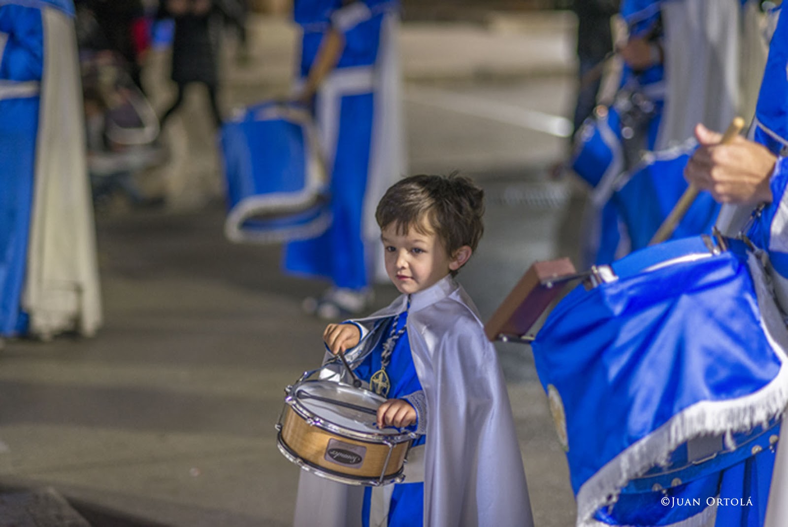 En las procesiones de semana santa, entre el rigor de los trajes, la seriedad de los semblantes, la exaltación de la tortura y muerte, el dolor de los penitentes y la música hiriente de cornetas y tambores, hay un elemento que distorsiona: los niños. No sé si los llevan a la procesión por tradición, para que se inicien en la cofradía y los desfiles, pero lo cierto es que desentonan. Son niños y van medio jugando a disfrazarse de cofrades, a tocar tambores de juguete, a acompañar a su padre o madre. No entienden del todo de qué va la fiesta.